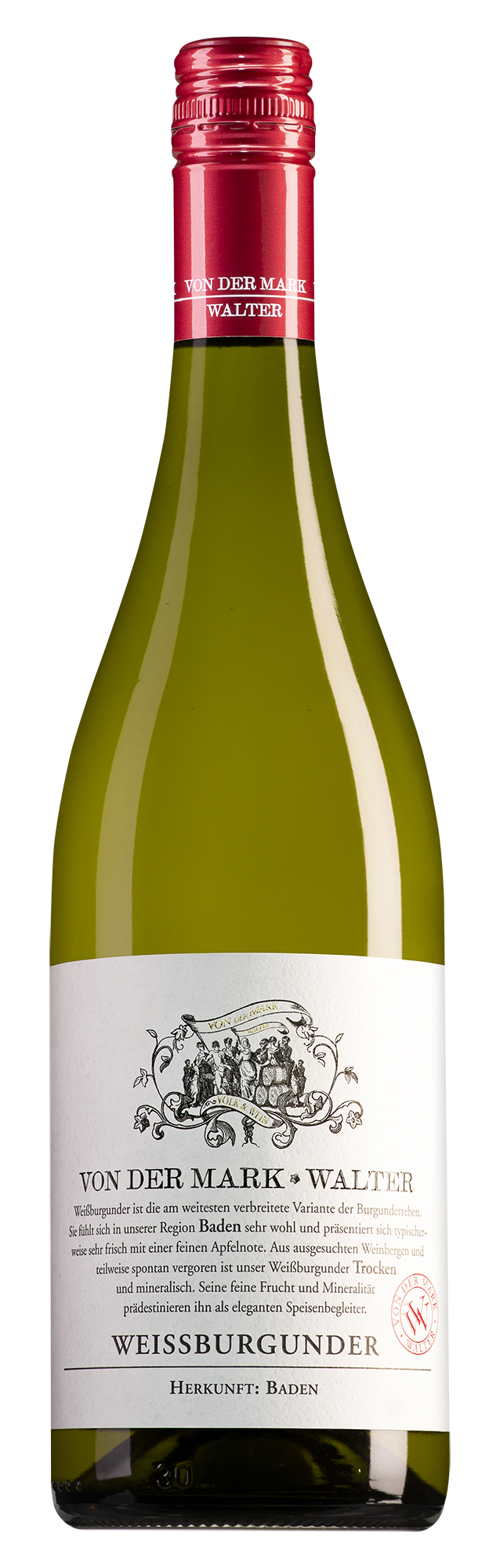 Voor deze cuvée betrekt hij de druiven deels uit eigen wijngaarden en deels bij bevriende wijnboeren. Alle wijnstokken zijn ten minste twintig jaar oud, wat de wijn een mooie smaakconcentratie geeft. Eenmaal op het wijngoed perst Jürgen de weissburgunderdruiven voorzichtig. Het sap laat hij vergisten in roestvrijstalen tanks en een klein deel in tonneaux. De Weissburgunder rijpt hierin vervolgens op de gisten tot aan de botteling.