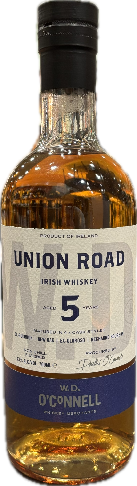 W.D. O’Connell staat bekend om het selecteren van bijzondere vaten en het creëren van Ierse whiskey’s met een eigen karakter. De Union Road 5 Year Old is hier een perfect voorbeeld van: een moderne Irish whiskey met respect voor traditionele rijpingstechnieken.